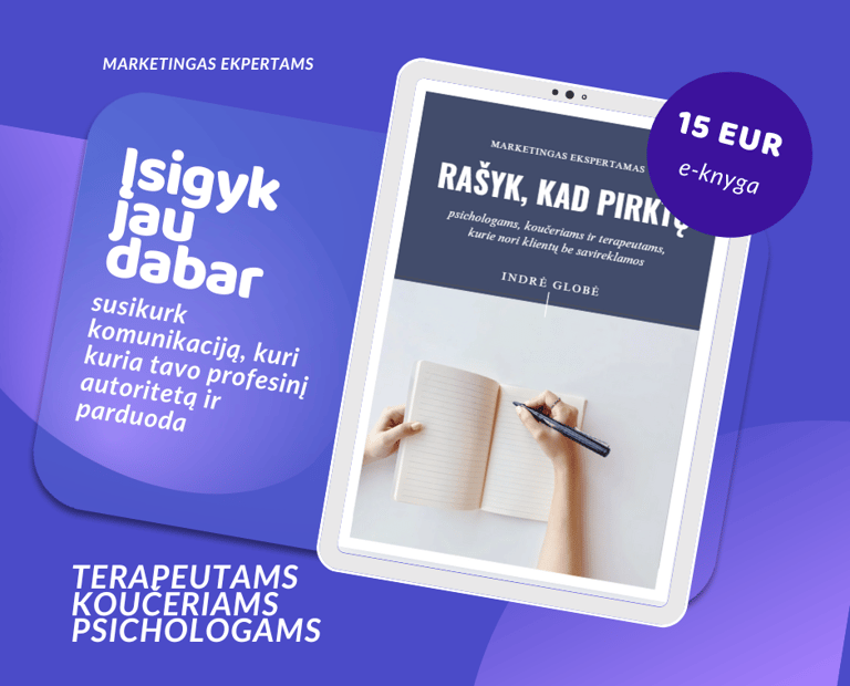 Esu el. knygos „Kaip rašyti, kad pirktų“ autorė, ICF ACC koučerė, komunikacijos strategė ekspertams ir marketingo specialistė, padedanti psichologams, koučeriams bei terapeutams kalbėti apie savo paslaugas be savireklamos. Mano darbas – išskaidyti sudėtingą komunikacijos ir marketingo procesą į paprastas formules ir aiškius žingsnius, kuriuos galima pritaikyti iškart. O ypač tada, kai specialistams trūksta marketingo žinių.